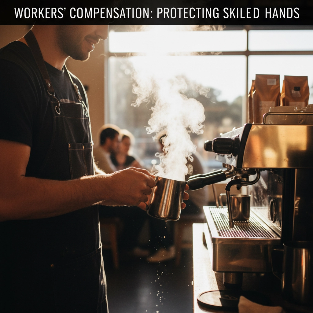 Workers' compensation insurance is mandatory in most states for businesses with employees. Coffee shops present numerous workplace injury risks including burns from hot equipment, cuts from cleaning tasks, and slips on wet surfaces.