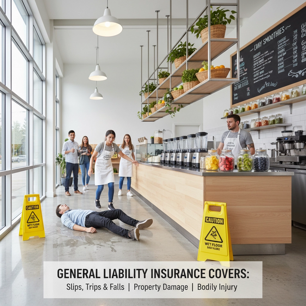 General liability insurance provides essential protection against third-party claims of bodily injury and property damage. Smoothie shops experience high customer traffic throughout operating hours, creating increased exposure to slip-and-fall incidents and accidental injuries.