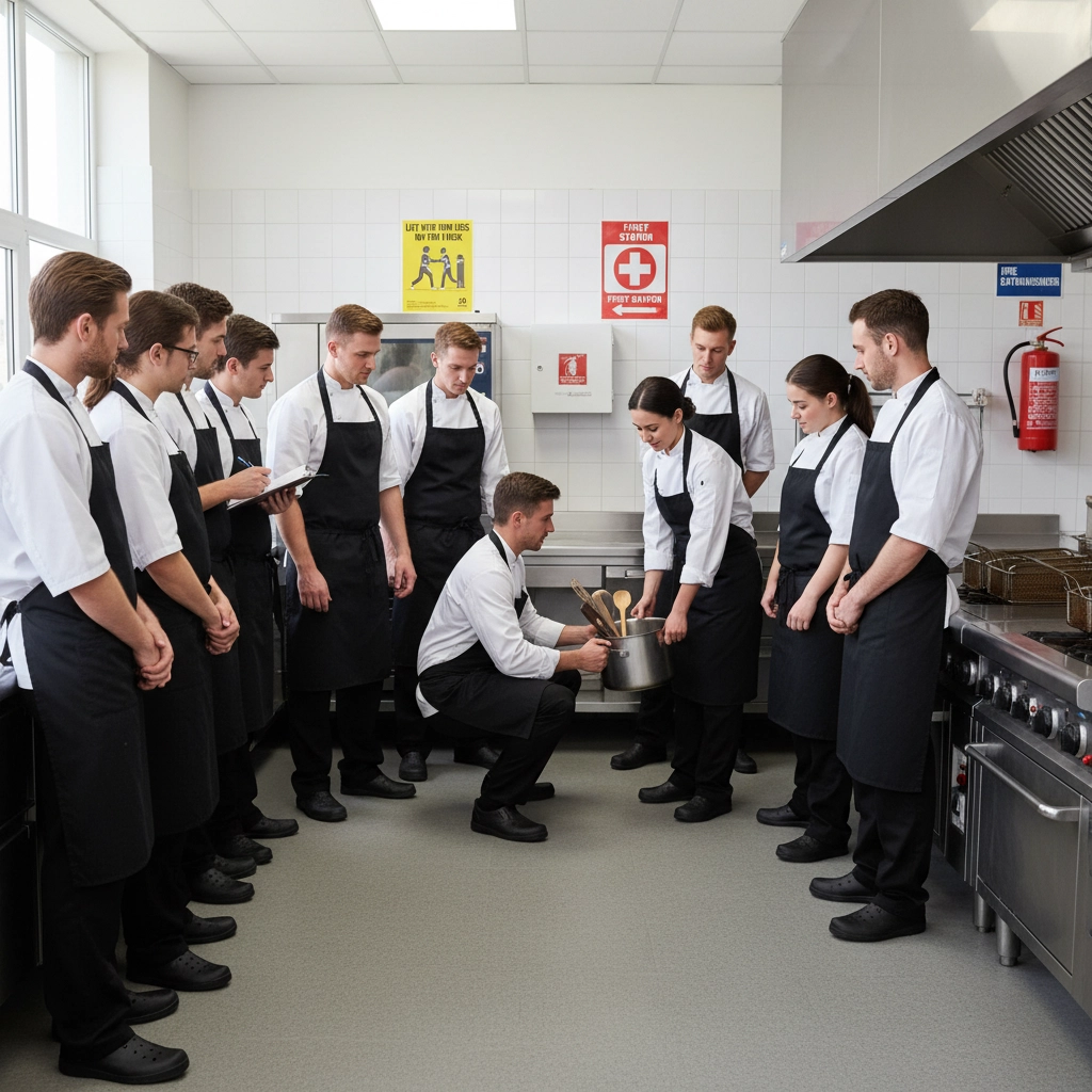 Develop workplace safety training programs addressing common restaurant hazards. Include proper lifting techniques, equipment operation procedures, and emergency response protocols. Document all training sessions and employee participation.